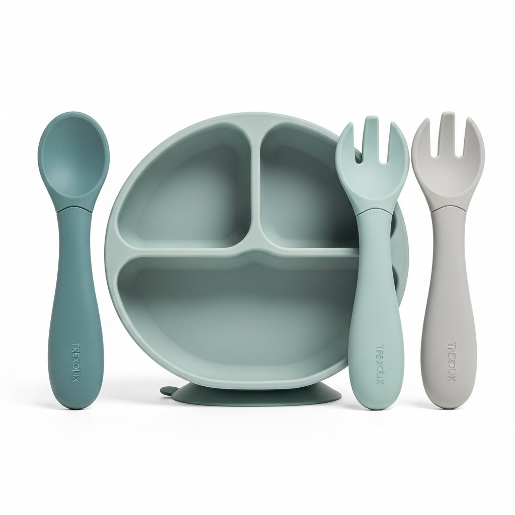 Trexolux Silicone Baby Feeding Set | Modern BPA-Free Weaning Plate & Utensils